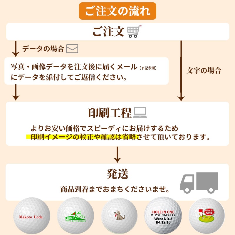 | 【その他】 | ●印字の位置、大きさは指定できません。 ●ボールの印字位置は多少ずれることがございます。予めご了承願います |