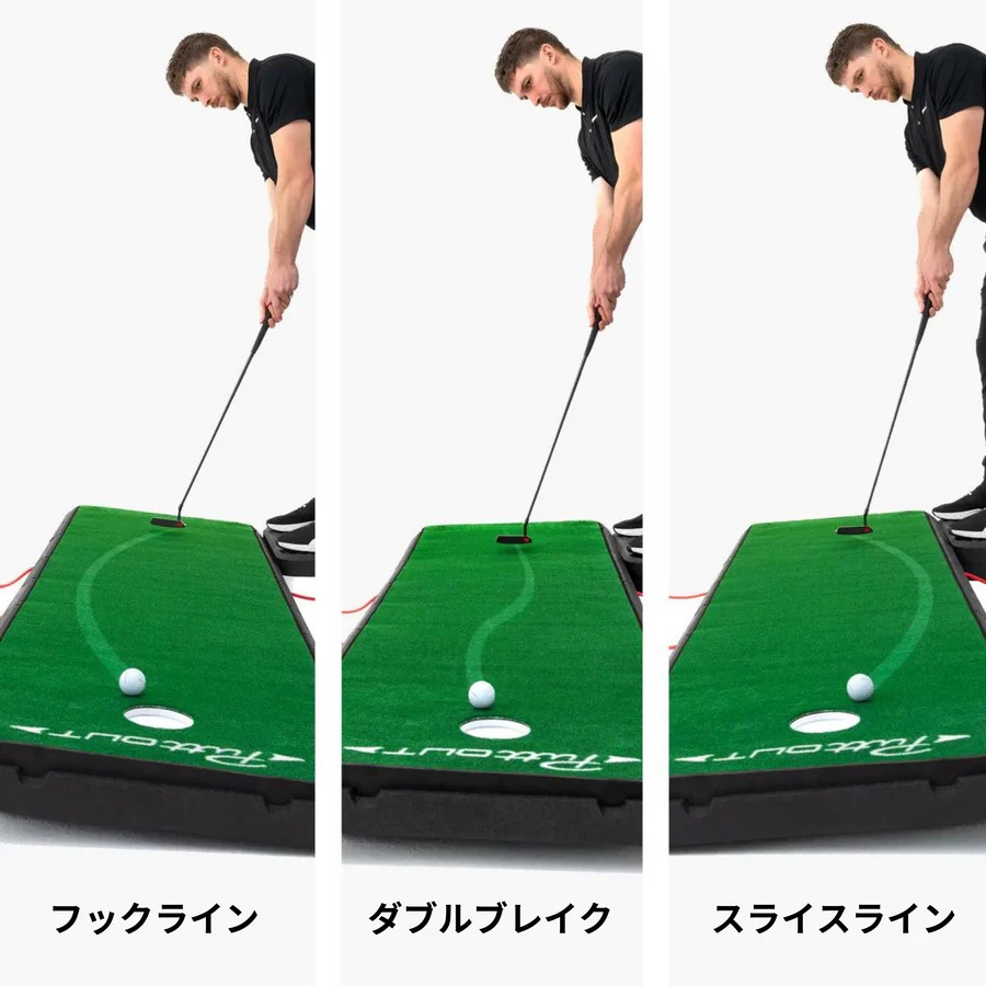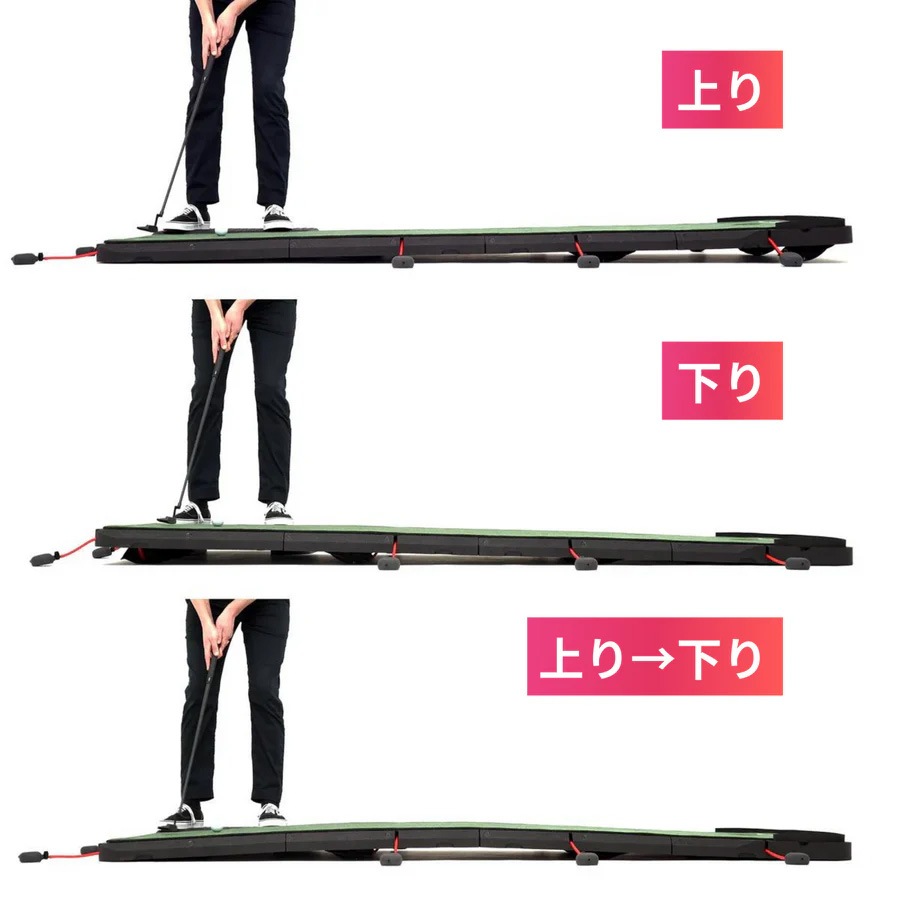 上り/下り/スライス/フック/ダブルブレイクなど様々な傾斜が練習できるパターマットなので、どんなグリーンでも適応できます。